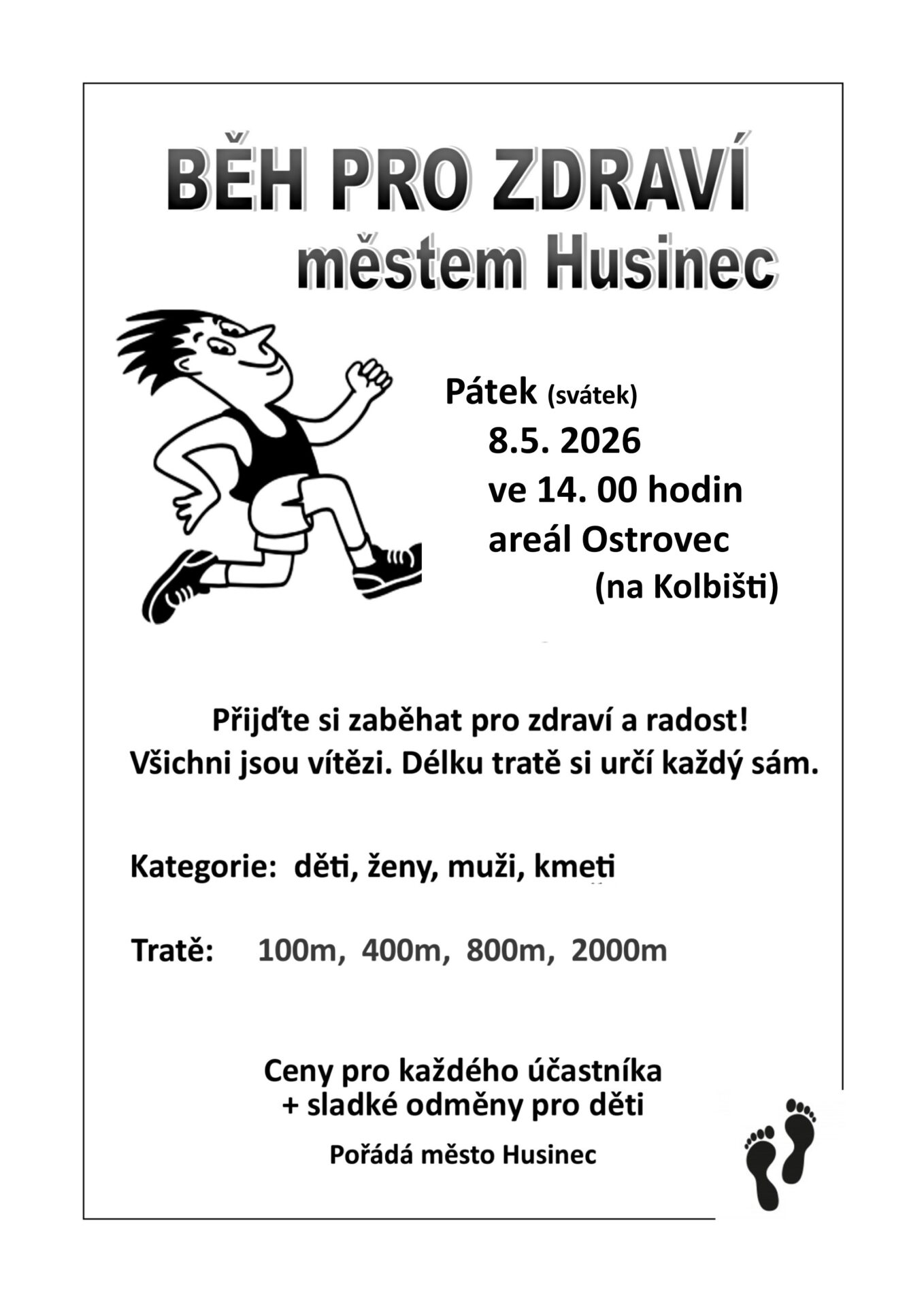 Přijďte si zaběhat pro zdraví a radost v pátek 8.5.2026 ve 14 hodin do areálu Ostrovec.
